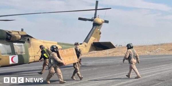 BBC travels with first Jordanian helicopter delivering aid to Gaza