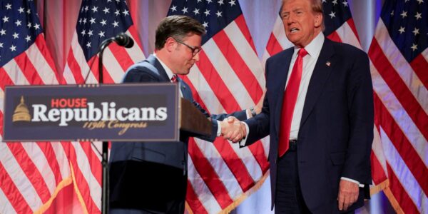 U.S. President-elect Donald Trump shakes hands with U.S. House Speaker Mike Johnson (R-LA) as he meets with House Republicans on Capitol Hill in Washington, U.S., November 13, 2024. Brian Snyder | Reuters President-elect Donald Trump again called on fellow Republicans…