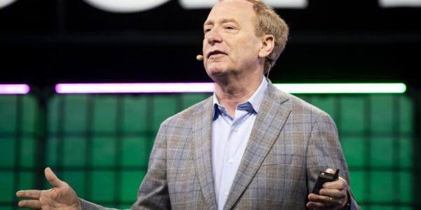 Vice Chair and President at Microsoft, Brad Smith, participates in the first day of Web Summit in Lisbon, Portugal, on November 12, 2024. The largest technology conference in the world this year has 71,528 attendees from 153 countries and 3,050…
