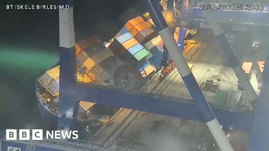 A ship docked at a port in Istanbul rolled on its side in the early hours of Monday morning, sliding its cargo into the water.